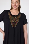 Siyah Nakış İşlemeli Örme Viscon Elbise