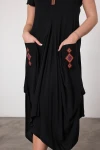 Siyah Nakış İşlemeli Örme Viscon Elbise