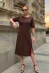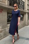 Siyah Şeritli Yırtmaç Detaylı Modal Kumaş Elbise