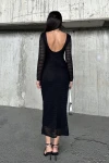 Siyah Sırt Dekolteli File Detaylı Elbise