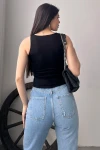 Siyah Tül Detaylı Göğüs Dekolteli Kolsuz Bluz BCDF-241065