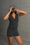 Siyah Tüvit Kumaş Yelek Ve Cepli Şort Alt Üst Takım
