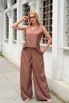 Siyah V Yaka Sıfır Kol Tensel Kumaş Dokuma Alt Üst Takım ;%100 Tensel