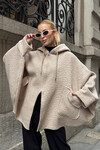 Siyah Yarasa Kol Çift Cepli Oversize Buklet Ceket Mont