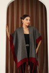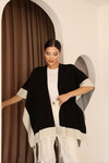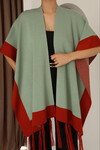 Tarçın Kahve Püsküllü Renk Bloklu Kışlık Triko Şal