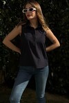 Turkuaz Keten Yarım Patlı Kolsuz Gömlek