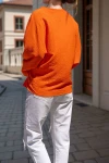 Turuncu Kendinden Dokulu Yarasa Kol Katlı Salaş Bluz BCBSK-25700-3549