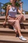 Turuncu Keten Beli Lastikli Cepli Paçası Yırtmaçlı Salaş Kapri Pantolon BCBSK-25700-3404
