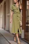 Yeşil Kısa Kol, Gömlek Yaka, Çift Cepli Aerobin Kumaşlı Kuşaklı Maxi Elbise ile rahatlığı ve şıklığı aynı anda yaşayın.; Bu özel elbise, modern tasarımı ve konforlu kumaşıyla tarzınızı ön plana çıkaracak.; Elbisenin üretiminde %60 polyester ve %40 pamuk karışımı olan aerobin kumaş kullanılmıştır.; Bu özel kumaş yapısı, elbisenin hafif ve nefes alabilir bir yapıya sahip olmasını sağlar.; Kısa kol ve gömlek yaka tasarımı, elbiseye şıklık ve zarafet katarken aynı zamanda rahat bir giyim deneyimi sunar.; Çift cepli detaylar, elbiseye kullanışlılık ve işlevsellik katar.; Telefon, anahtar gibi günlük eşyalarınızı taşıma konusunda pratiklik sağlar.; Uzunluğu 120 cm olarak belirtilmiştir.; Bu uzunluk, elbisenin her boyda kullanıcının tercihine uygun olmasını sağlar.; Yeşil rengin canlılığı ve doğallığı, elbiseye enerji ve tazelik katar.; Bu renk, hem günlük giyimde hem de özel etkinliklerde harika bir seçenektir.; Kuşaklı tasarım, elbisenin belini vurgularken aynı zamanda bedeninizi şekillendirme imkanı sunar.; İhtiyaca göre farklı şekillerde kuşak bağlayarak farklı stiller yaratabilirsiniz.; Bu maxi elbise, hem gündelik hayatta hem de özel davetlerde rahatlıkla tercih edebileceğiniz çok yönlü bir seçenektir.; Şıklığı ve rahatlığı bir arada arayanlar için ideal bir parçadır.