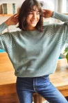 Yeşil File Detaylı Yarasa Kol Triko Kazak