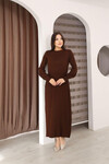 Zümrüt Yeşili Bisiklet Yaka Çizgili Triko Elbise BCES-253011
