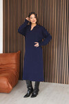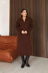 Zümrüt Yeşili Polo Yaka Midi Boy Triko Elbise BCES-253018