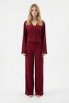 Acı Kahve Geniş Kol Düğme Detaylı Yakalı Bluz Ve Palazzo Pantolon Alt Üst Takım