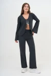Antrasit Bağlamalı Ceket Ve Pantolonlu Örme Alt Üst Takım