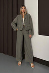 Bej Çift Cep Kapaklı Ceket Ve Palazzo Pantolon Dokuma Alt Üst Takım BCHN-254002
