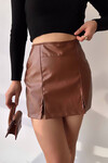 Bej Çift Yırtmaçlı Şort Etek