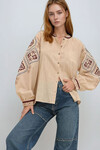 %80 Pamuk %20 Polyester;Boy: 63 Cm Göğüs: 50 Cm Kol: 47 Cm;Motif İşlemeli, Oversize Fit Ve Bol Kesimli Modeli, Rahat Kesimi İle Hem Fit Görünebileceğiniz, Trend Tasarımıyla Kombinlerin Vazgeçilmezi Balon Kol Nakışlı Yakasız Gömlek Sizlerle!!!;Boy:1.70 Cm Göğüs:90 Cm Bel:60 Cm Kalça:90 Cm.