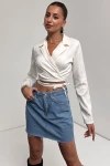 Beyaz Gömlek Yaka Beli Bağlamalı Crop Bluz