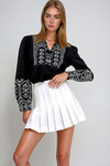 %80 Pamuk %20 Polyester;Boy: 60Cm Göğüs: 100Cm Bel: 94Cm Kalça: 100Cm Kol: 61Cm Yaka Derinliği : 14Cm;Zarif Nakış Süslemelerine Ve İncelikli Püskül Detaylarına Sahip Bu Kadın Bluz, Hakim Yaka Formuyla Klasik Bir Duruş Kazandırırken, Pamuklu Keten Dokuma Kumaşıyla Gündüzden Geceye Konforlu Kullanım Sunar. Düz Hatlı Fakat İşlemeleriyle Dikkat Çeken Önü, Farklı Aksesuarlarla Kolayca Tamamlanabilir. Minimal Alt Parçalarla Kombinlenerek Gündelik Şıklık; Şık Eteklerle Akşam Görünümüne Uygun Hale Gelir.;Boy:1.70 Cm Göğüs:90 Cm Bel:60 Cm Kalça:90 Cm.