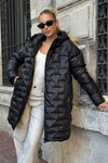 Beyaz Kapitoneli Fermuarlı Kapüşonlu Uzun Şişme Mont BCVL-254200