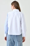 Beyaz Mavi Özel Tasarım Poplin Dokuma Gömlek