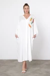 Beyaz Nakış İşlemeli Maxi Boy Dokuma Viscon Elbise