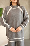 Bordo Çizgi Detaylı Bisiklet Yaka Tunik Ve Geniş Paça Triko Alt Üst Takım BCES-252030