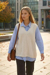 Gömlek Detaylı V Yaka Triko Süveter Bluz