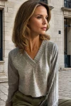 Bordo V Yaka Kendinden Dokulu Raglan Kol Crop Kazak