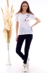 Ekru V Yaka Nakış İşlemeli Tişört