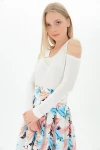 Ekru V Yaka Omuzu Açık Zincir Detaylı Viscon Bluz