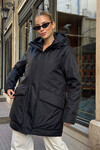 Gri Geniş Cepli Kapüşonlu Uzun Mont