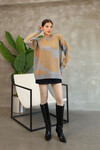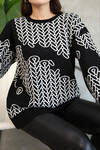 Haki Bisiklet Yaka Desenli Triko Kazak