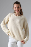 Haki Bisiklet Yaka Su Yolu Desenli Triko Kazak