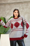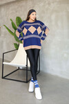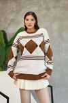 Hardal Bisiklet Yaka Desenli Triko Kazak