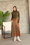 Hardal Dik Yaka Etek Görünümlü Tek Parça Desenli Triko Elbise