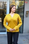 Hardal V Yaka Kapüşonlu Arkası Uzun Scuba Salaş Sweatshirt BCBSK-25700-3506