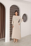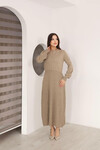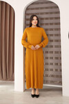 Kahverengi Bisiklet Yaka Çizgili Triko Elbise BCES-253011