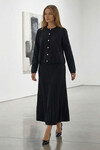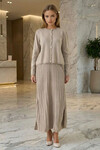 Bisiklet Yaka Düğmeli Hırka Ve Pliseli Midi Boy Etek Takım