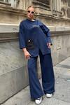 Kahverengi Cep Detaylı 2 İplik Örme Bluz Ve Pantolon Alt Üst Takım