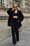 Kahverengi Gömlek Ve Palazzo Pantolon Piliseli Kumaş Dokuma Alt Üst Takım  BCVL-25V236