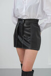 Kahverengi Kontrast Dikiş Detaylı Şort Etek
