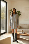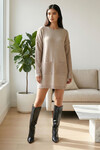 Kahverengi Ribanalı Bisiklet Yaka Mini Triko Elbise