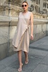 Kahverengi Sıfır Kol Yandan Bağlamalı Tensel Kumaş Dokuma Elbise;%100 Tensel