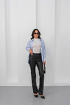 Kahverengi Yüksek Bel Yırtmaçlı Suni Deri Pantolon