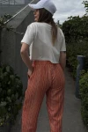 Kiremit Duble Paça Çizgili Dokulu Pantolon