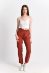 Kiremit Düğmeli Cepli Dokuma Pantolon