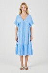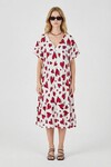 Kırmızı V Yaka Oversize Kesim Desenli Çift Cepli Volanlı Elbise