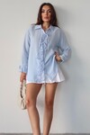 Lacivert Düğme Detaylı Bağlamalı Müslin Gömlek