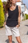 Lacivert tonunun zarafetiyle tasarlanmış bu müslin kumaş bluz, askılı yapısı ve kat detayları sayesinde hem şıklığı hem de konforu bir arada sunuyor.; Hafif ve nefes alabilir kumaşı, sıcak yaz günlerinde serin kalmanızı sağlarken; elegan tasarımı, günlük kombinlerinizi veya özel davetlerdeki kıyafet seçimlerinizi mükemmel bir şekilde tamamlar.